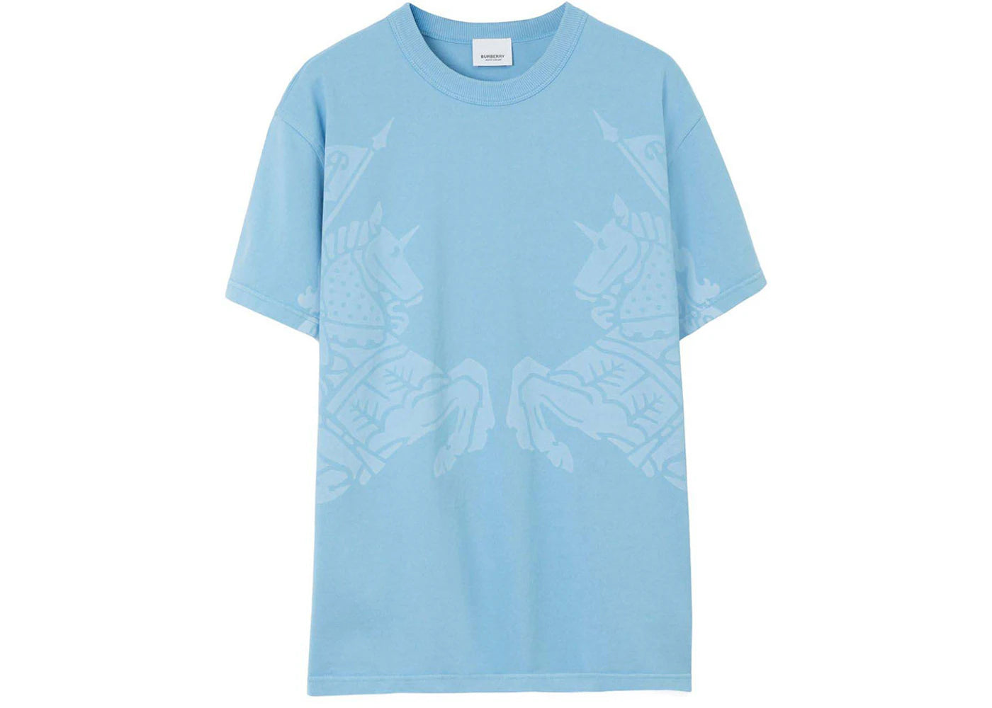 The Burberry Equestrian Knight T-shirt in a fresh light blue combines sophisticated style with casual streetwear. Perfect for fashion-conscious women who value high-quality clothing for everyday life and leisure, combining elegance with urban flair.