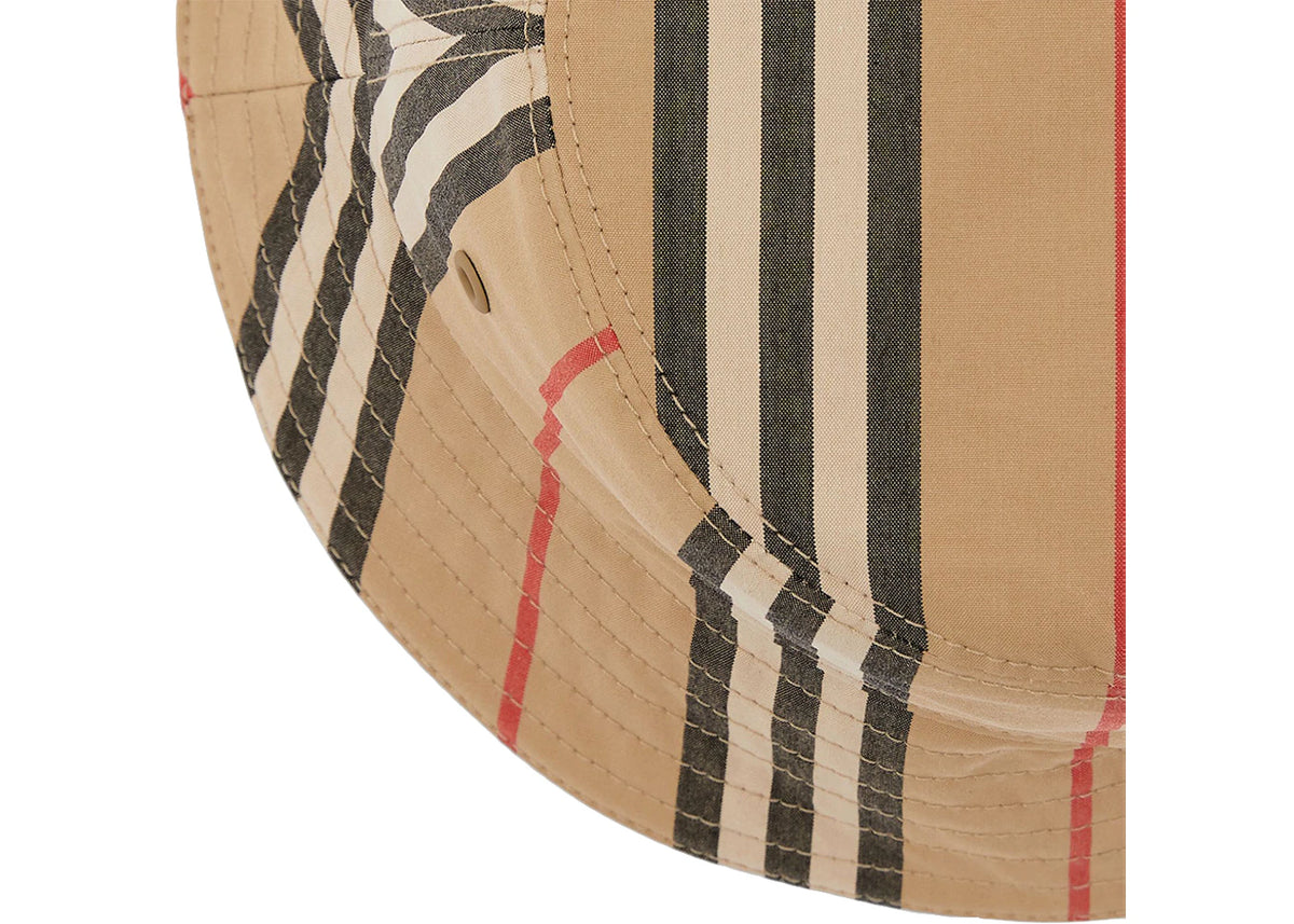 Bob réversible Burberry à rayures iconiques en coton beige archive