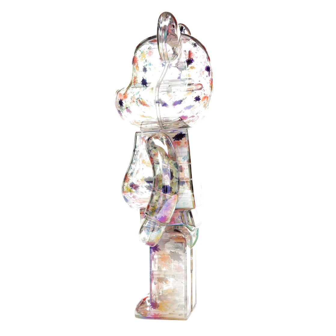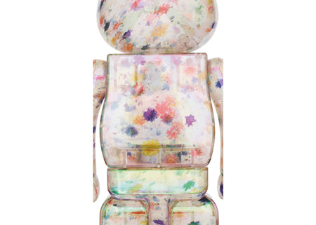 Das Bearbrick Anever Set entstand in Kooperation mit Anever, einem Designer-Label, das für seine kreativen Handtaschen und Accessoires mit floralen Resin-Details bekannt ist. Die Figuren zeigen eine zarte Kombination aus transparenter, pastellgelber und rosa Färbung, die durch bunte Blüten auf Torso und Gliedmaßen ergänzt wird. Geometrische Elemente an Füßen und Rücken setzen moderne Akzente und verleihen den Figuren eine besondere Tiefenwirkung. Die hochwertige Verarbeitung macht das Set nicht nur zu einem optischen Highlight, sondern auch zu einem langlebigen Sammlerstück. Egal, ob als dekoratives Kunstobjekt im Wohnzimmer oder als besonderes Geschenk – das Bearbrick Anever Set bringt Farbe und Stil in jede Sammlung.