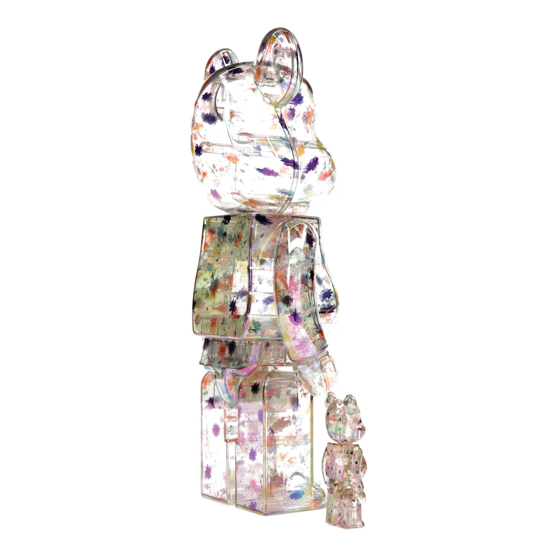 Bearbrick Anever 100% & 400% Set – Ein exklusives Sammler-Highlight mit einzigartigem Design. Dieses Set vereint zwei ikonische Figuren in zwei Größen: eine 7 cm und eine 28 cm große Bearbrick-Figur, die durch ihre translucenten Blütenmotive in Regenbogenfarben besticht.