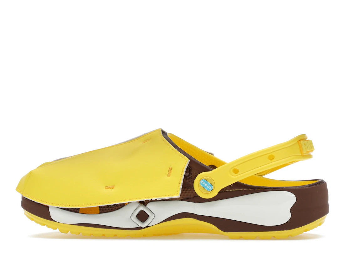 Diese Clogs sind aus dem bewährten Croslite™-Material gefertigt, das leicht, strapazierfähig und einfach zu reinigen ist. Die Ventilationslöcher sorgen für Frische während des Tragens und die drehbare Ferse garantiert einen festen Halt bei jedem Schritt. Das auffällige Design in gelb mit braunen Akzenten zieht alle Blicke auf sich und bringt spielerischen Charme in deinen Alltag – ob zu Hause, beim Gaming oder unterwegs.
