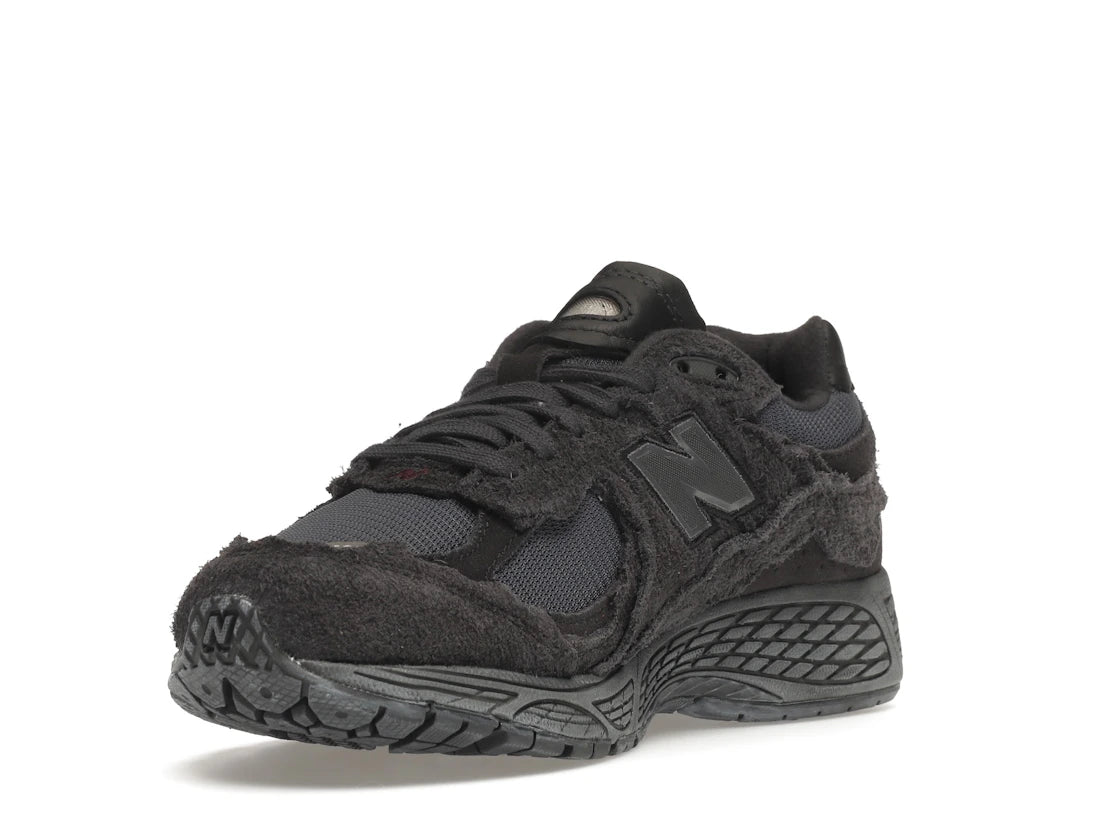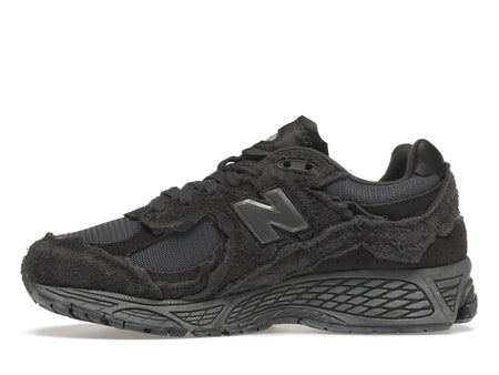 Der New Balance 2002R Protection Pack Phantom kombiniert dunkles Mesh mit ausgefransten, rauen Wildleder-Overlays. Der All-Black-Look mit Retro-Running-Sohle passt perfekt zu modernen Streetwear-Styles.