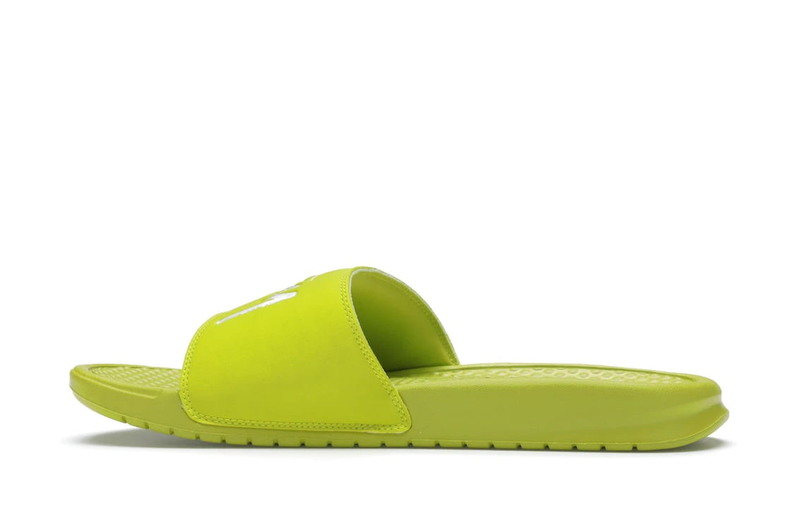Hol dir die Nike Benassi Stussy Volt Slides, wenn du einen stylischen und bequemen Begleiter für die warme Jahreszeit suchst, der durch Farbe und Komfort überzeugt!