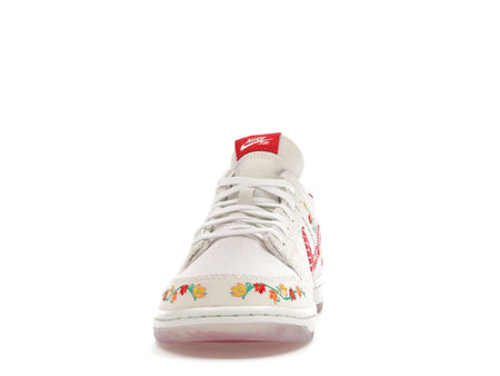 Der Sneaker ist Teil der exklusiven Nike N7 Kollektion 2023 und vereint die Zusammenarbeit zwischen Nike SB und dem Dunk Low Pro. Die Kombination aus Opti Yellow, University Red und weiteren Farbhighlights macht den Schuh zu einem echten Hingucker. Das weiße Canvas-Obermaterial punktet mit floraler Stickerei auf den Wildleder-Elementen, während die rote Leder-Swoosh durch dekorative Nähte eingerahmt wird. Die robuste Cupsole sorgt für Stabilität und langen Tragekomfort, ideal für Alltag, Freizeit und sportliche Aktivitäten. Nike steht seit Jahrzehnten für innovative Designs und hochwertige Verarbeitung – ein Statement auf und neben dem Board.