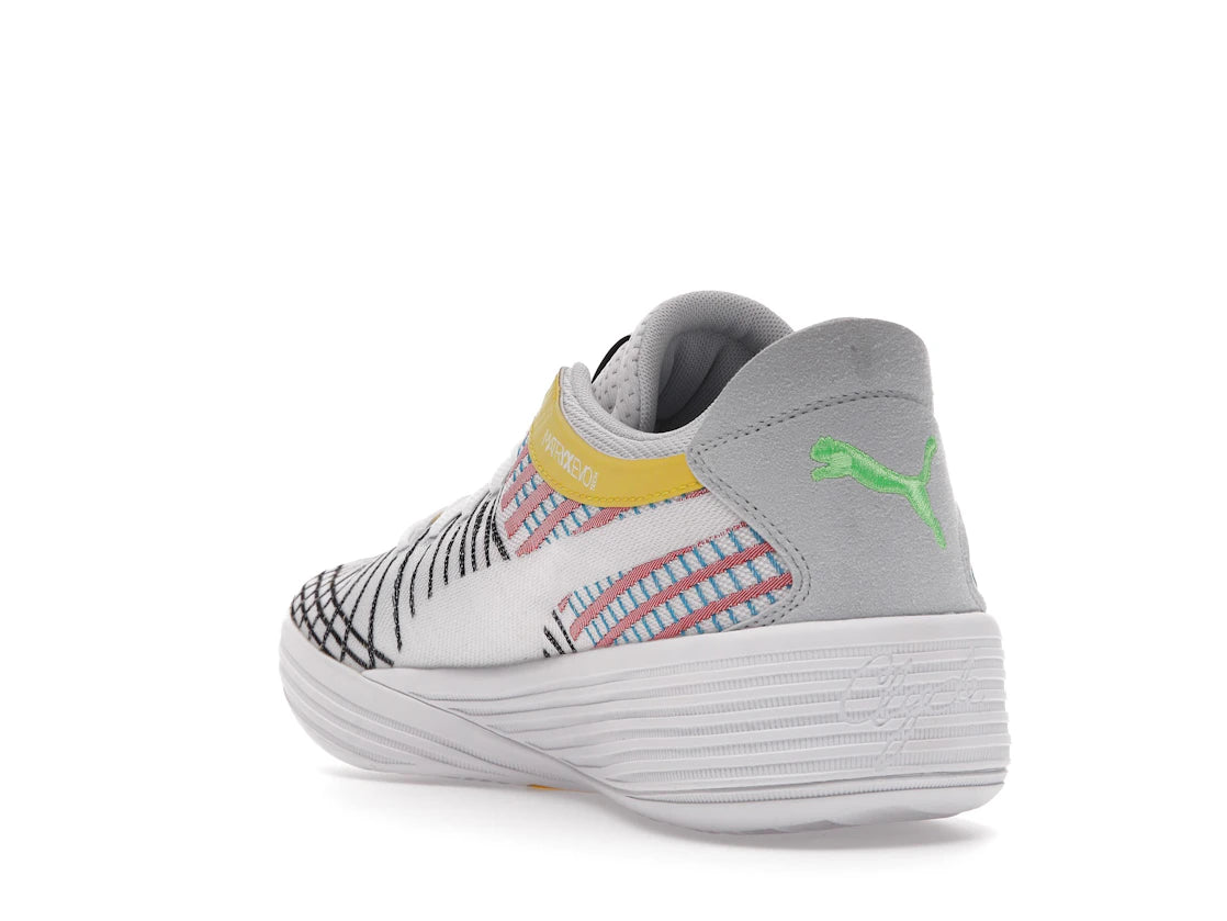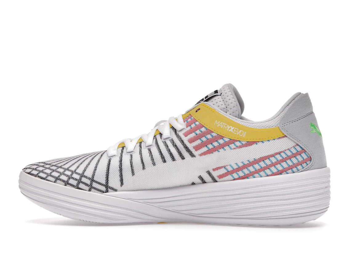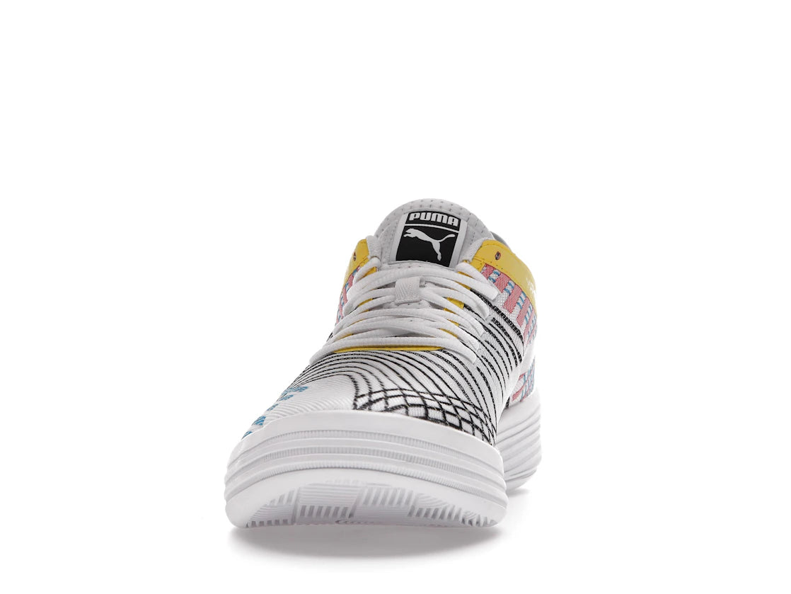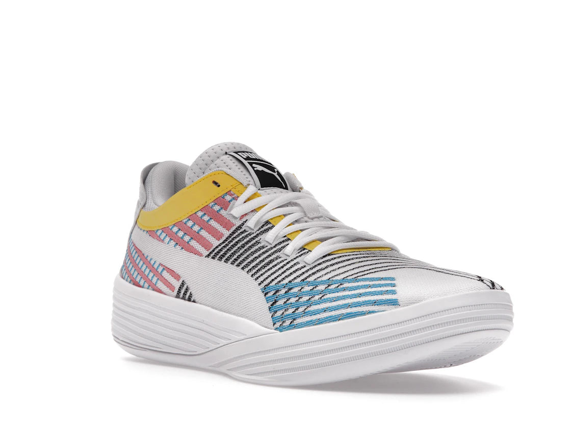 Der Puma Clyde All-Pro White Blue Atoll setzt die Basketball-Tradition des legendären Walt "Clyde" Frazier mit einem frischen Design fort. Mit seinem minimalistischen Look und den einzigartigen mehrfarbigen Streifen vereint er sportlichen Look und Alltagstauglichkeit.