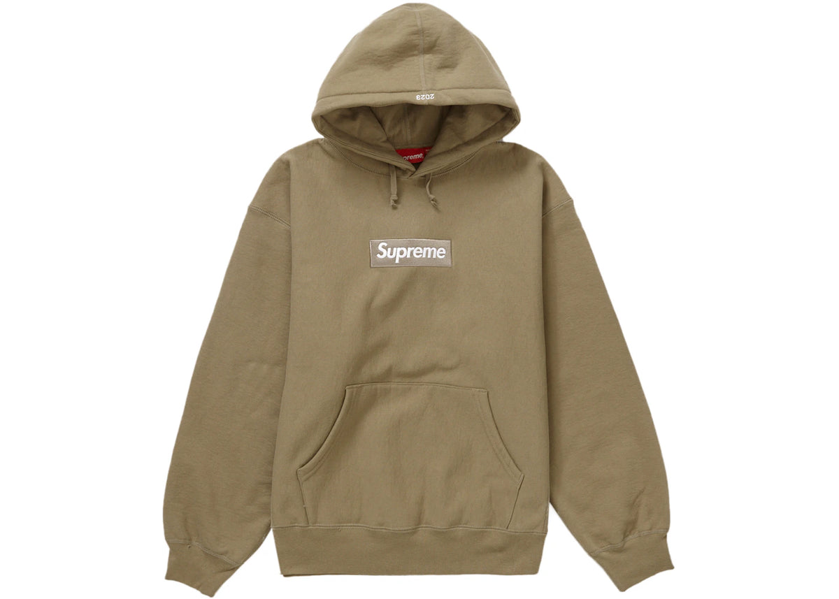 Hol dir das Supreme Box Logo Hooded Sweatshirt (FW23) Dark Sand, wenn du Streetwear mit Kultstatus und erstklassiger Qualität suchst!