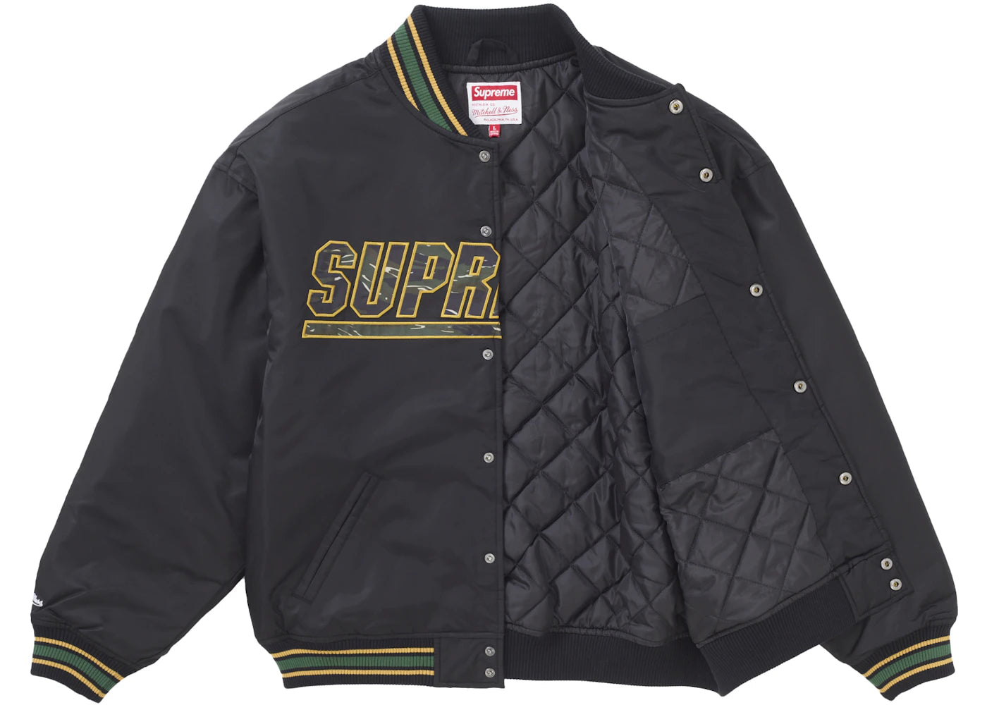 Supreme Mitchell & Ness Camo Logo Varsity Jacket Black
